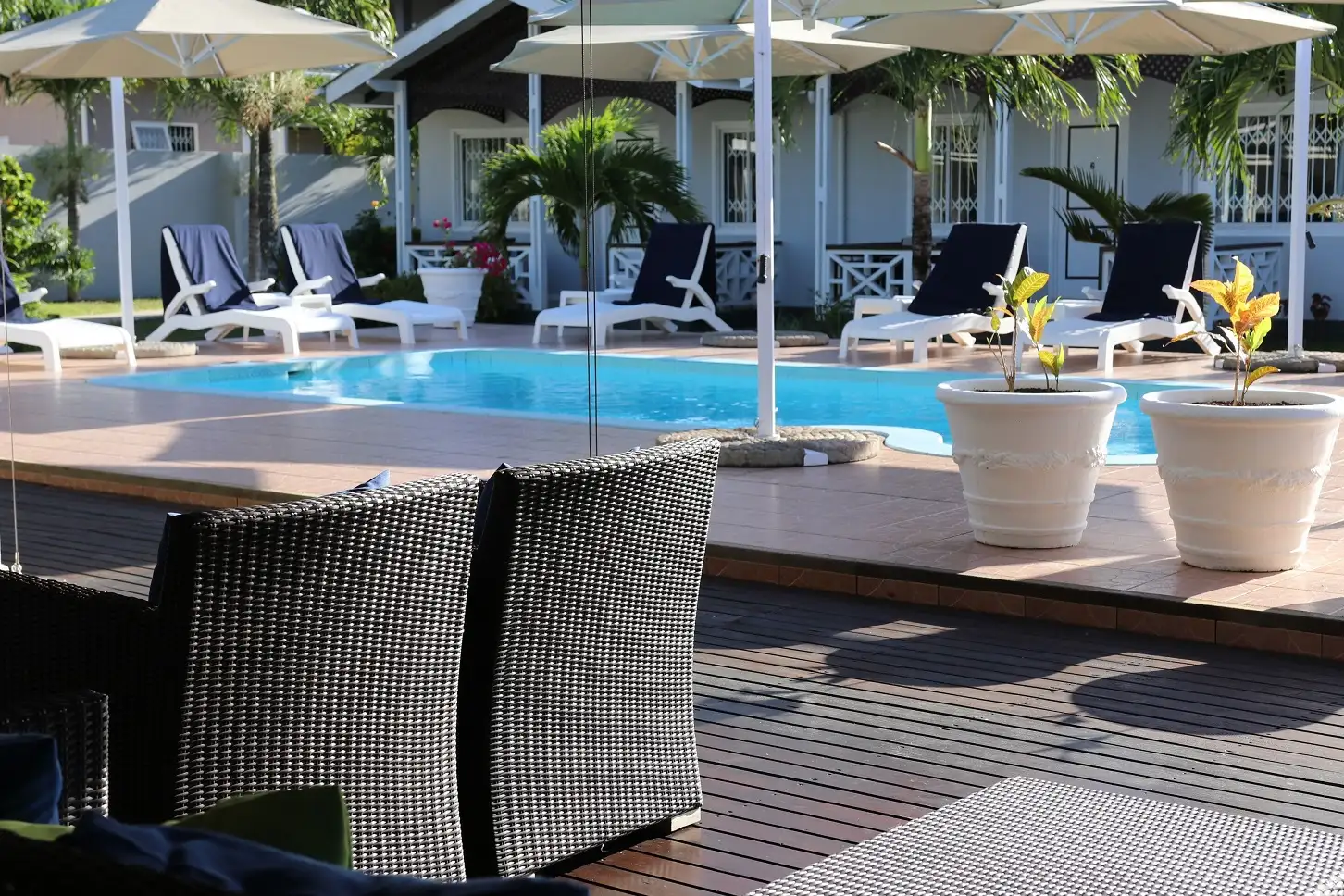 La Roussette warmly welcomes a diverse range of guests, including families, couples, and business travelers. Its accommodations, comprised of eleven bungalow-style standard and superior rooms, have been thoughtfully designed to ensure modern comfort and convenience. Each room is equipped with essential amenities such as air-conditioning, satellite TV, sumptuous king-size beds, spacious wardrobes, practical writing desks, and well-appointed bathrooms. Furthermore, the rooms feature private balconies that allow guests to immerse themselves in the tranquil ambiance of the surroundings. For added spaciousness and flexibility, the superior rooms offer a comfortable living room suite and an additional bed, comfortably accommodating up to four guests.